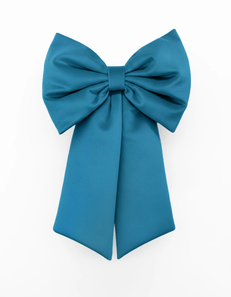 Il fiocco in velluto azzurro con coda imbottita è una decorazione dal tono fresco e delicato, perfetta per chi cerca uno stile elegante ma meno convenzionale.